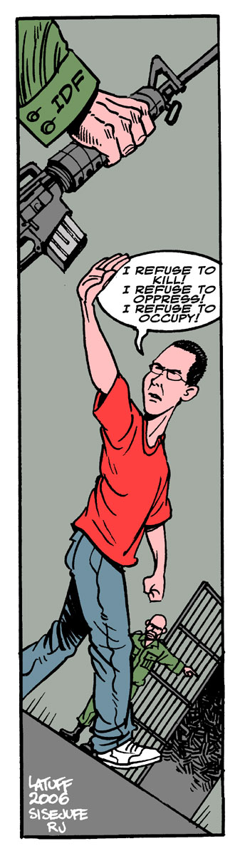 Como representantes do povo, os membros do gabinete não têm qualquer dever de apresentarem sua visão para o futuro do país, e podem continuar com esse círculo sangrento, sem fim à vista. Mas nós, como cidadãos e seres humanos, temos um dever moral de recusar a participar desse jogo cínico. É por isso que eu decidi recusar entrar para o Exército Israelense em 19 de novembro de 2012".