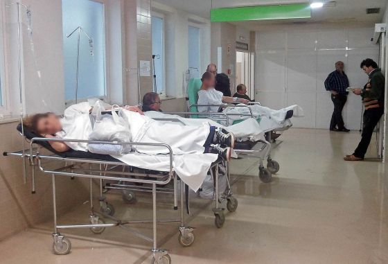 Foto: Nós-UP / Doentes esperam amontoados/as nos corredores do CHUAC em abril de 2012. Feijó dijo que era umha situaçom pontual. Para quem nom lembrar, estamos em março de 2013.