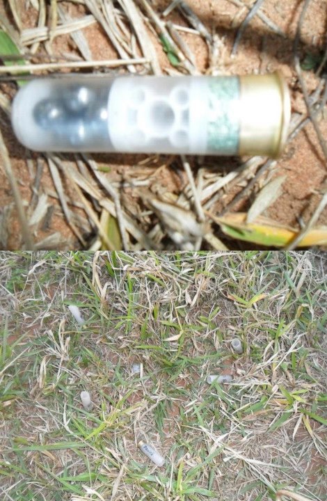 Ao longo da margem direita e esquerda dos dois córregos há restantes de mata ciliar. Esses homens mão armados se dividiram em três grupos e começaram nos cercar e se aproximar de nossa manifestação, mirando as armas de fogos em nossas direções, ficamos nas miras de 50 espingardas (calibre 12), eles vieram lentamente se aproximando se abaixando, de 200 metros, ao mesmo tempo, eles começaram atirar em nós, só ouvimos tiros, gritaria e fumaças em nossas direções e chuva de balas, diante disso, juntos aos tiros ouvimos choro das crianças e mulheres e corremos em direções da mata que tem ao longo dos dois córregos, antes da mata tem um brejo feio e lama em que ficávamos atolados no barro e caíamos e deitamos das balas.