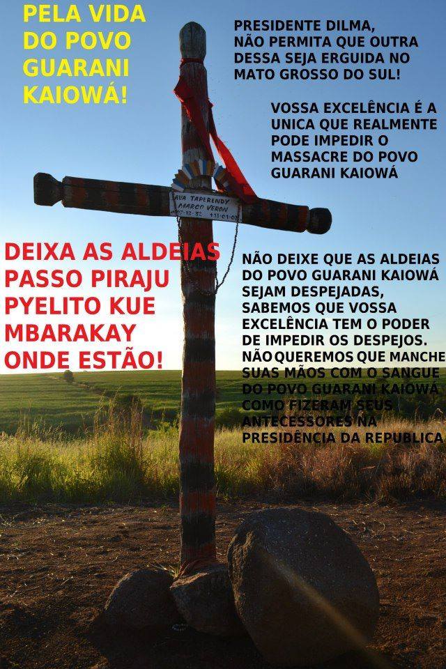 Já passados mais de sete (07) anos não ocorreu demarcação das terras indígenas Ypo’i, Kurusu Amba, Guaiviry, Pindo Roky, Tey’i Jusu, entre outros tekoha demandados, a demarcação é paralisada por parte do governo federal. Os fazendeiros assassinos dos Genivaldo e Rolindo, Nisio Gomes, Xurite Lopes, Denilson, entre outros não são punidos pela justiça federal. No entanto, no mês de julho, a Justiça Federal-MS expediu sete (07) ordens de despejo aos indígenas, decidindo contrariamente à sua permanência nas terras indígenas demandadas em demarcação. Contudo, mais de quinze (15.000) mil indígenas resistem e decidem permanecer definitivamente nos tekoha já reocupados, mandando uma só mensagem ao governo e justiça federal dizendo que não sairão dos tekoha: “Não sairemos de nossas terras nem vivos e nem mortos” “ vamos resistir e morrer pelas nossas terras”; assim se manifestam à justiça federal. Assim, diante desse contexto tenso de aflição e perplexidade, diante de um eminente despejo por forças policiais, milhares de indígenas Guarani e Kaiowa do cone sul do Estado de Mato Grosso do Sul se transladam aos tekoha em apoio às lutas e à resistência dos povos Guarani e Kaiowa.