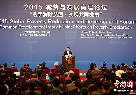 Num fórum de alto nível relativo ao combate à pobreza e à promoção do desenvolvimento realizado no Grande Palácio do Povo, na capital chinesa, Xi disse que a China é o maior país em desenvolvimento no mundo e que está comprometido com a promoção da eliminação da pobreza na esfera global.