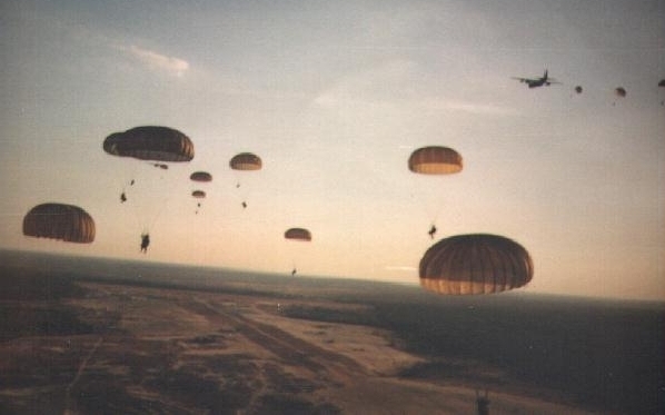 Os norte-americanos atacaram a ilha pela manhã, em duas frentes. Cerca de 500 fuzileiros pularam de paraquedas no Aeroporto de Ponta Salina, próximo à Saint George’s, capital da ilha, que estava sendo construído por cubanos e franceses e havia sido apontado por Reagan como um futura base para aviões cubanos e soviéticos, acusação repetidamente negada por Bishop.