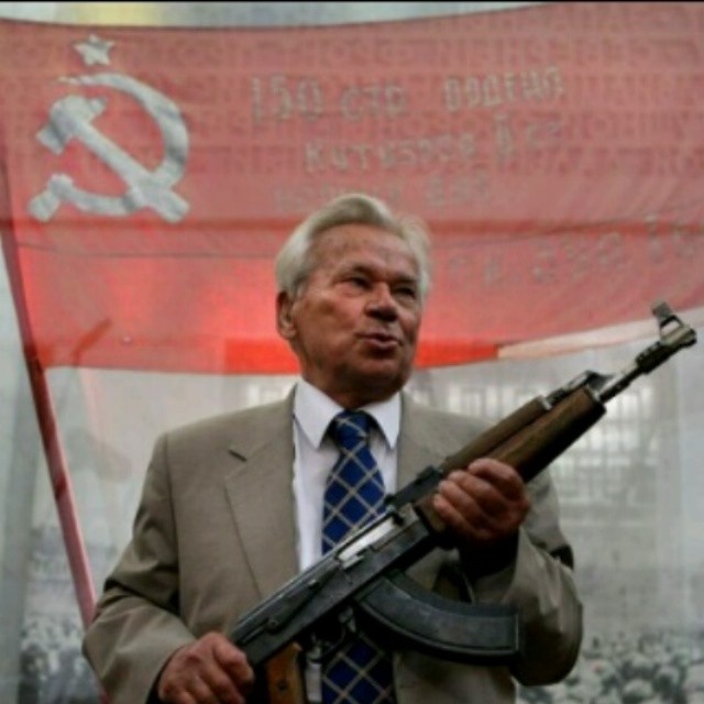 Criada em 1947 na indústria estatal soviética IZH, a AK-47 (Automática Kalashnikov) é o fuzil de assalto mais bem sucedido e imitado, após ser adotada pelo Exército Vermelho no fim da II Guerra Mundial e até a atualidade, agora já pelo exército -e polícia- da Rússia.